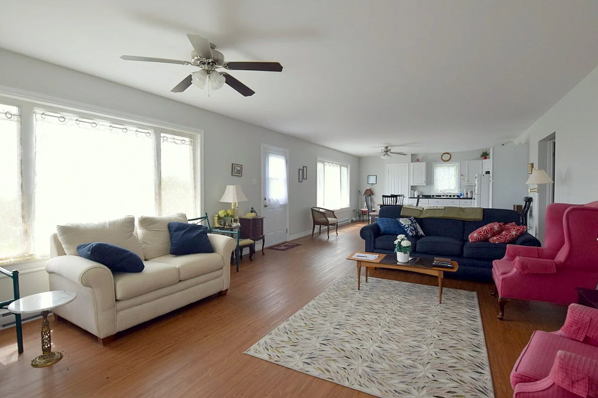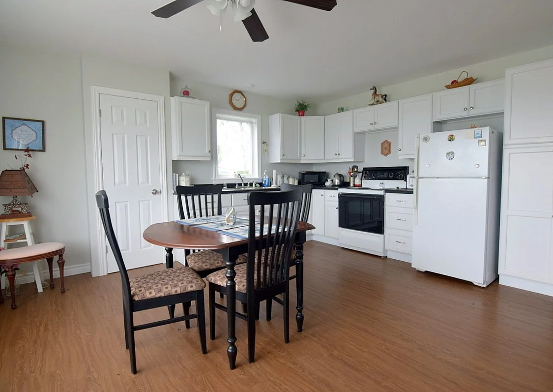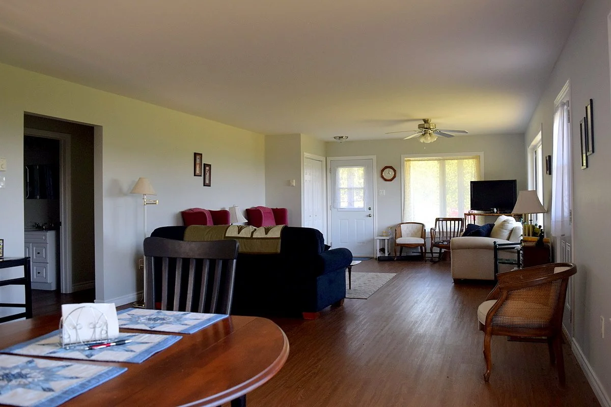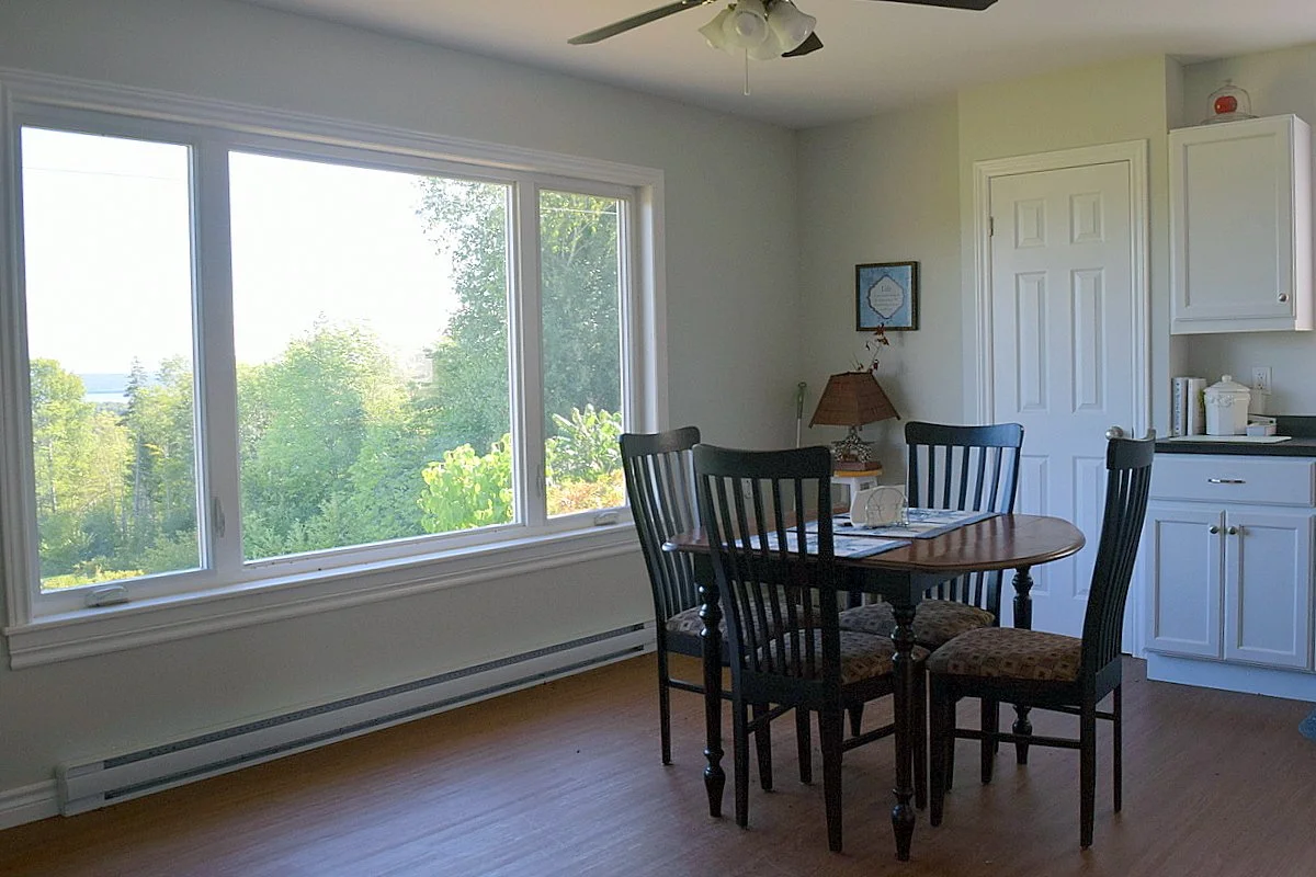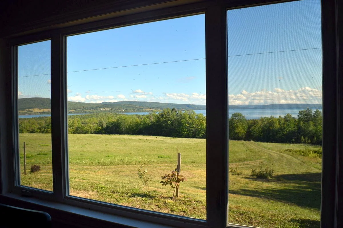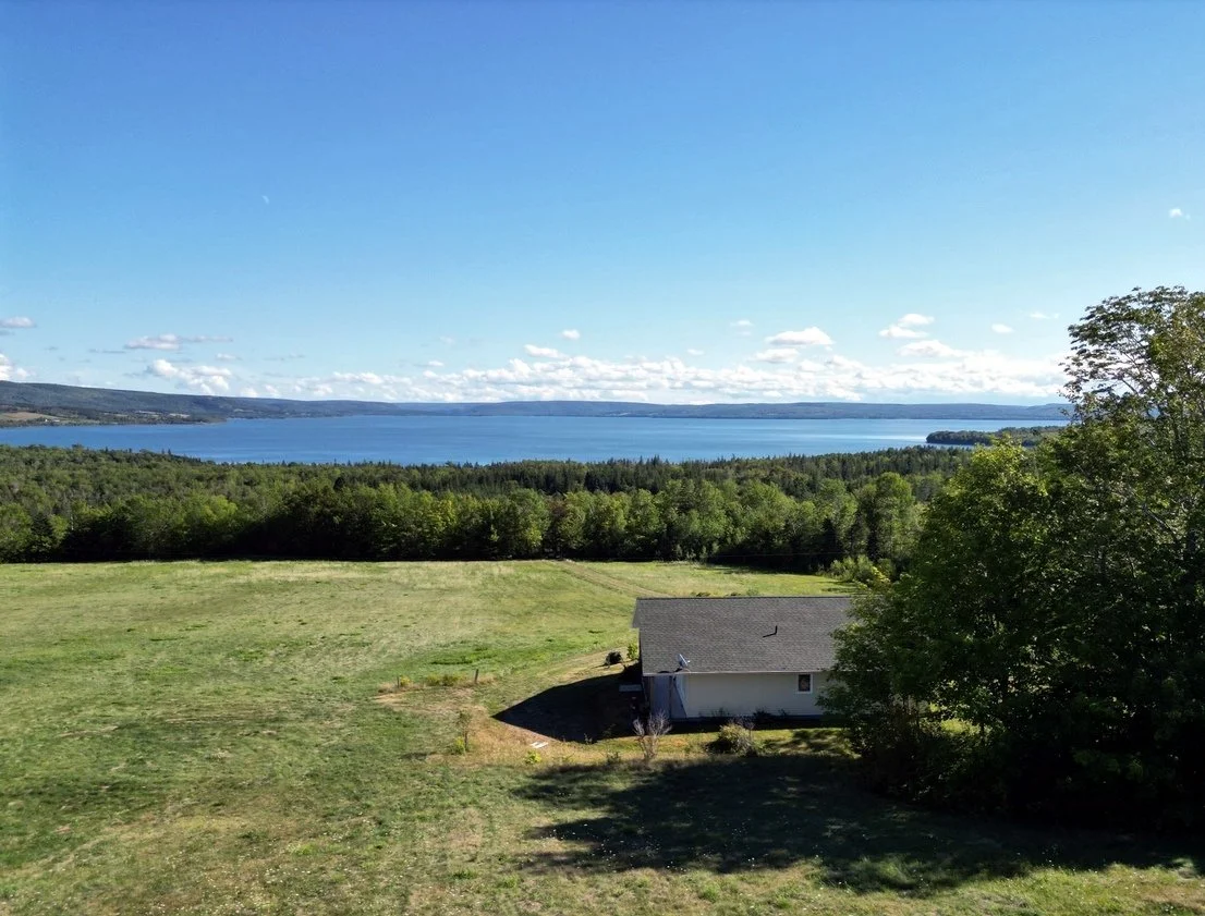 Built in 2018, this bungalow is sited on 4 acres with wonderful views facing south down the length of Lake Ainslie, Nova Scotia's largest freshwater lake, and the head of the Margaree River. The home is on a slab and has two bedrooms and bath. Kitchen, living and dining areas are all in one open space the length of the building, with large windows facing the lake views. Dimensions 30’ x 40’ for 1200 square feet total.