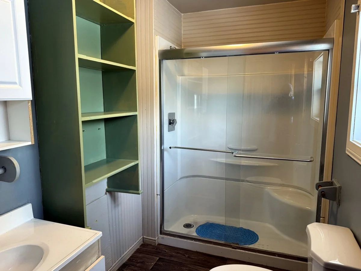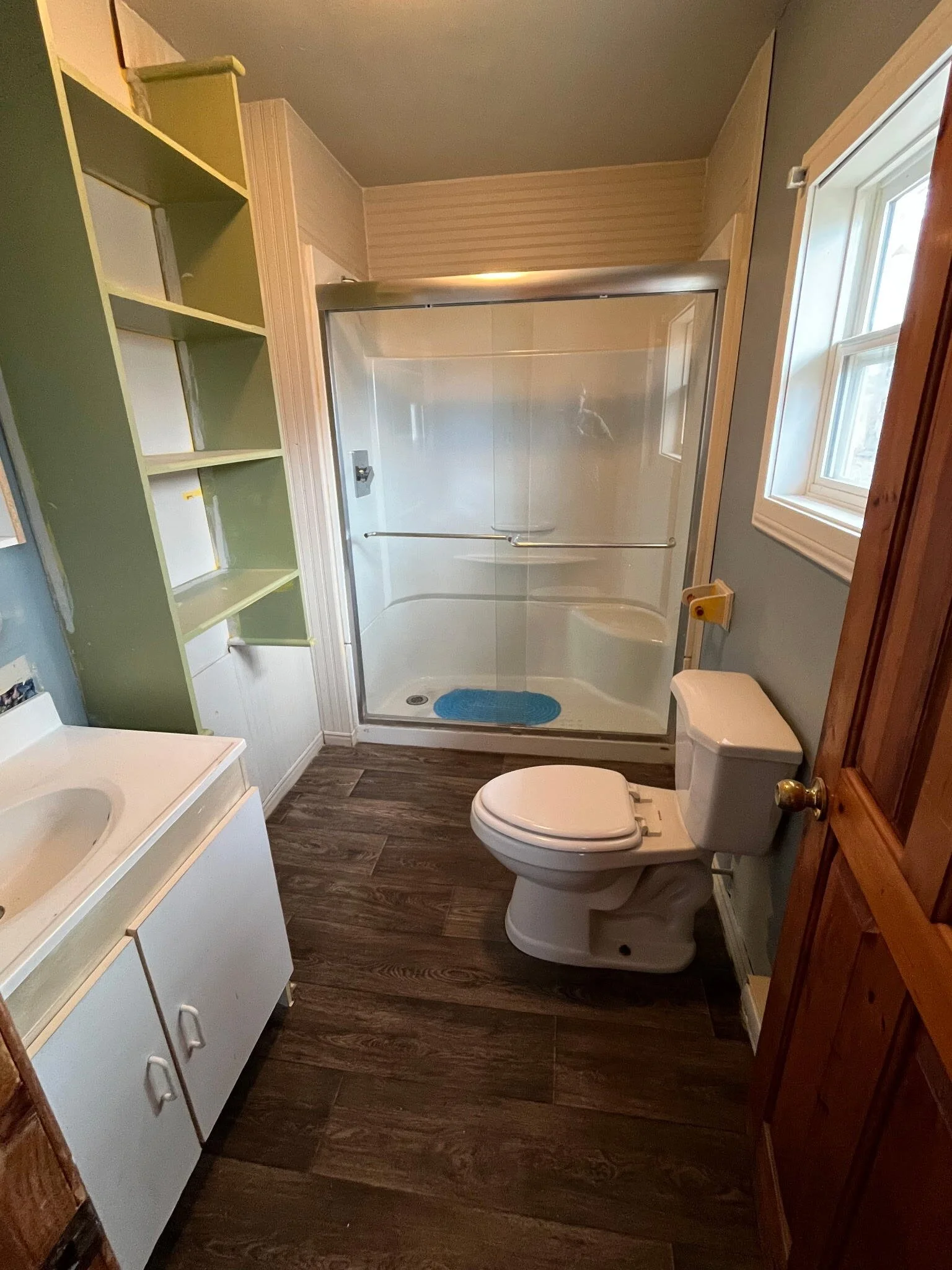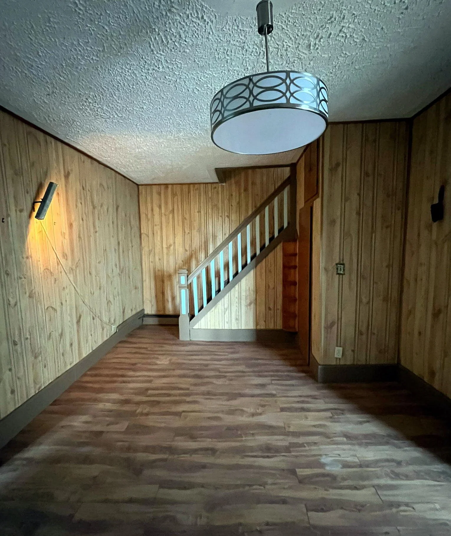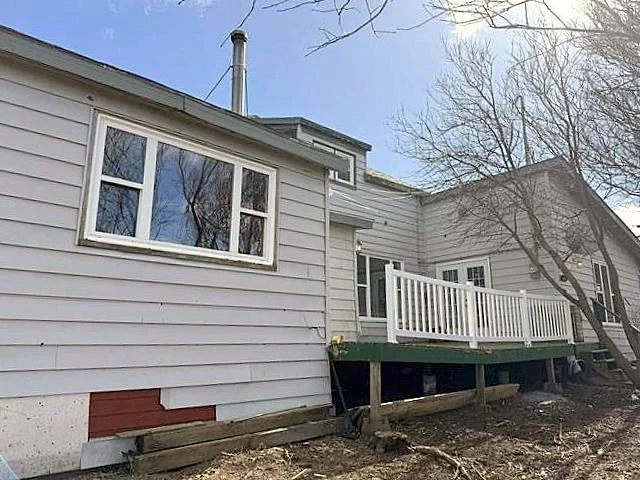 A couple of small rooms house the furnace, laundry, and some storage. A den or ‘pass-through’ room has a bedroom off it, and leads to the living room with wood burning stove. From here you can access three other bedrooms on the main floor. Stairs from the living room take you to the two upstairs bedrooms and second bath, via an 11’ x 8’ wood-lined landing.
