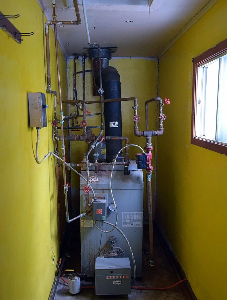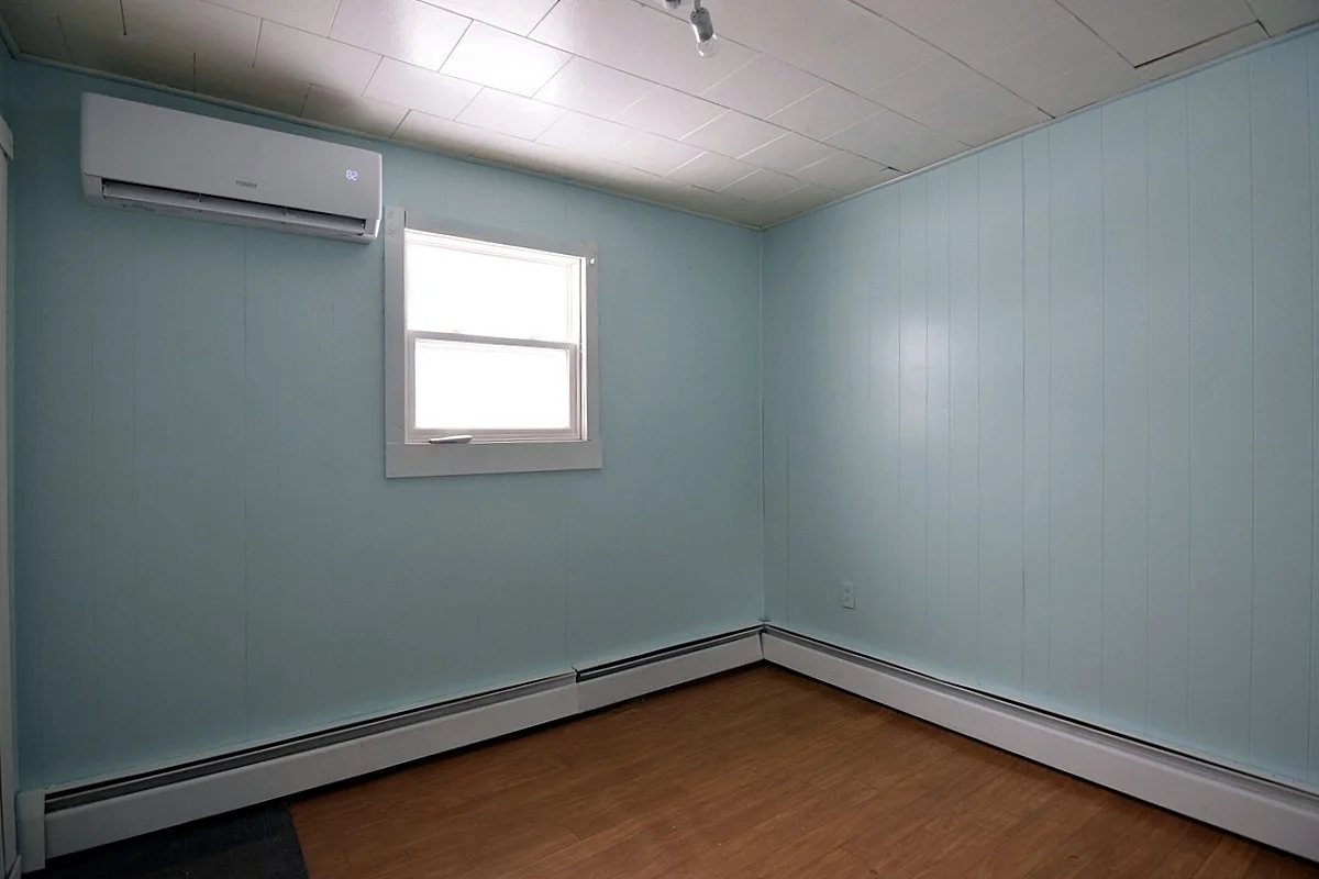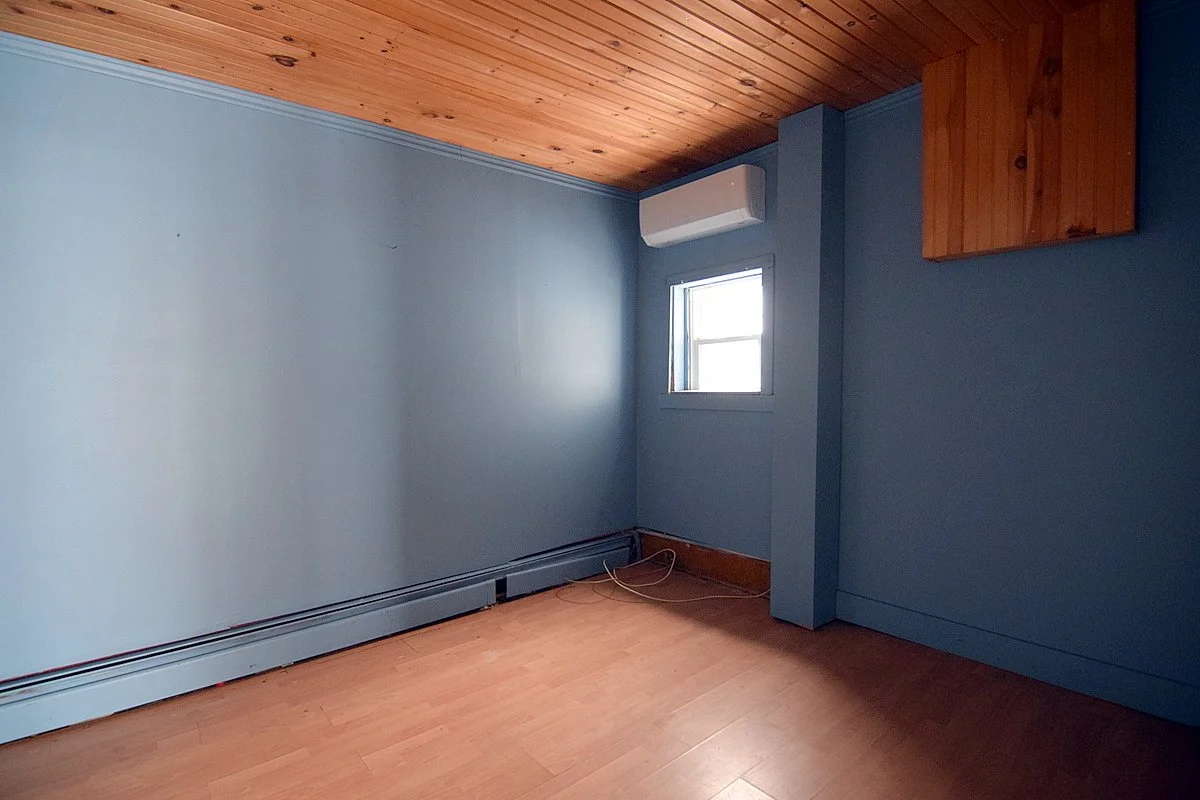Besides the wood stove, an oil fired furnace feeds hot water baseboards. In addition there are heat pumps in three of the bedrooms. Some rooms have a view of the ocean.