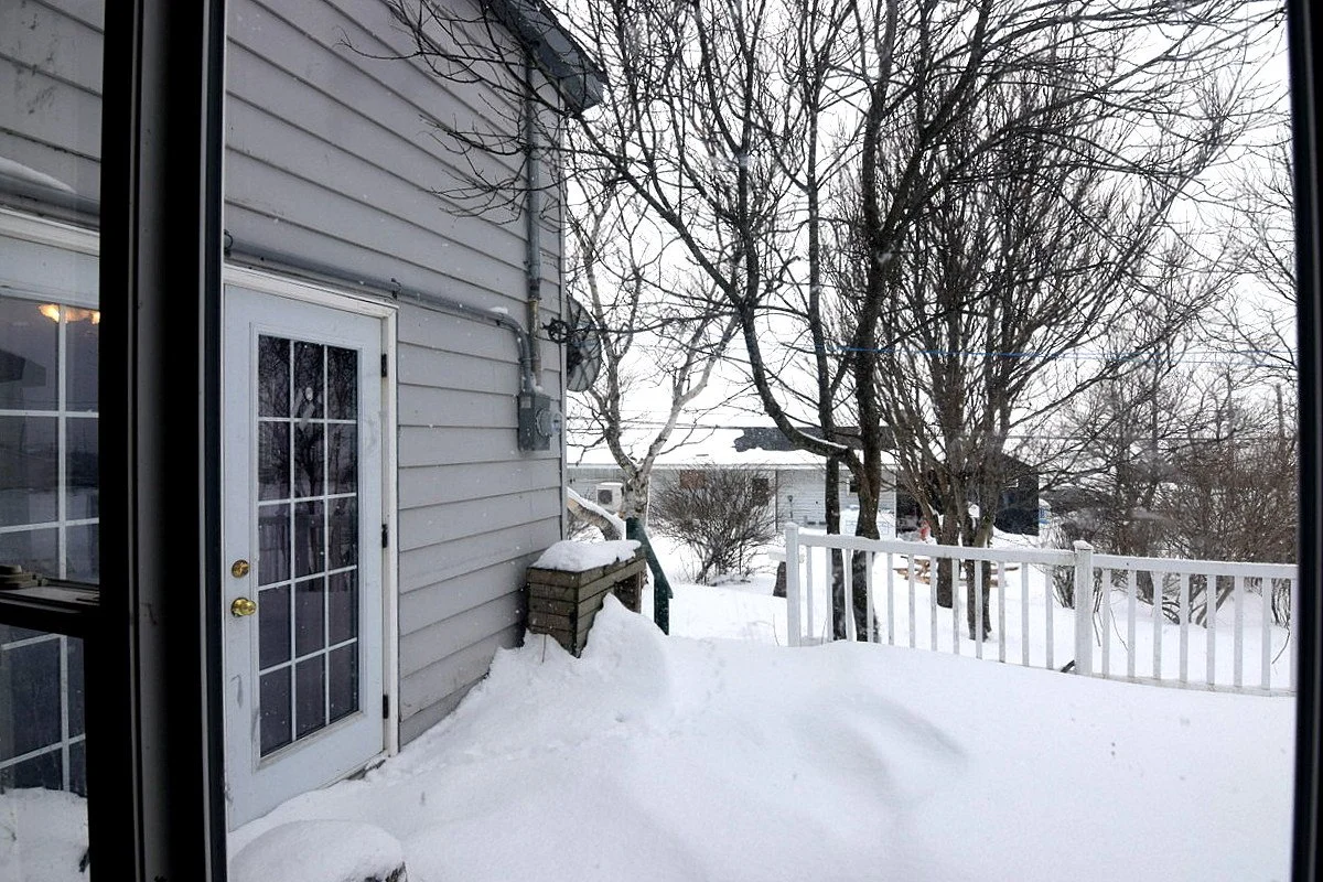 The whole lot is attractively treed, and quite private in summer as the trees leaf out and the busy main street is hidden by the building in front.