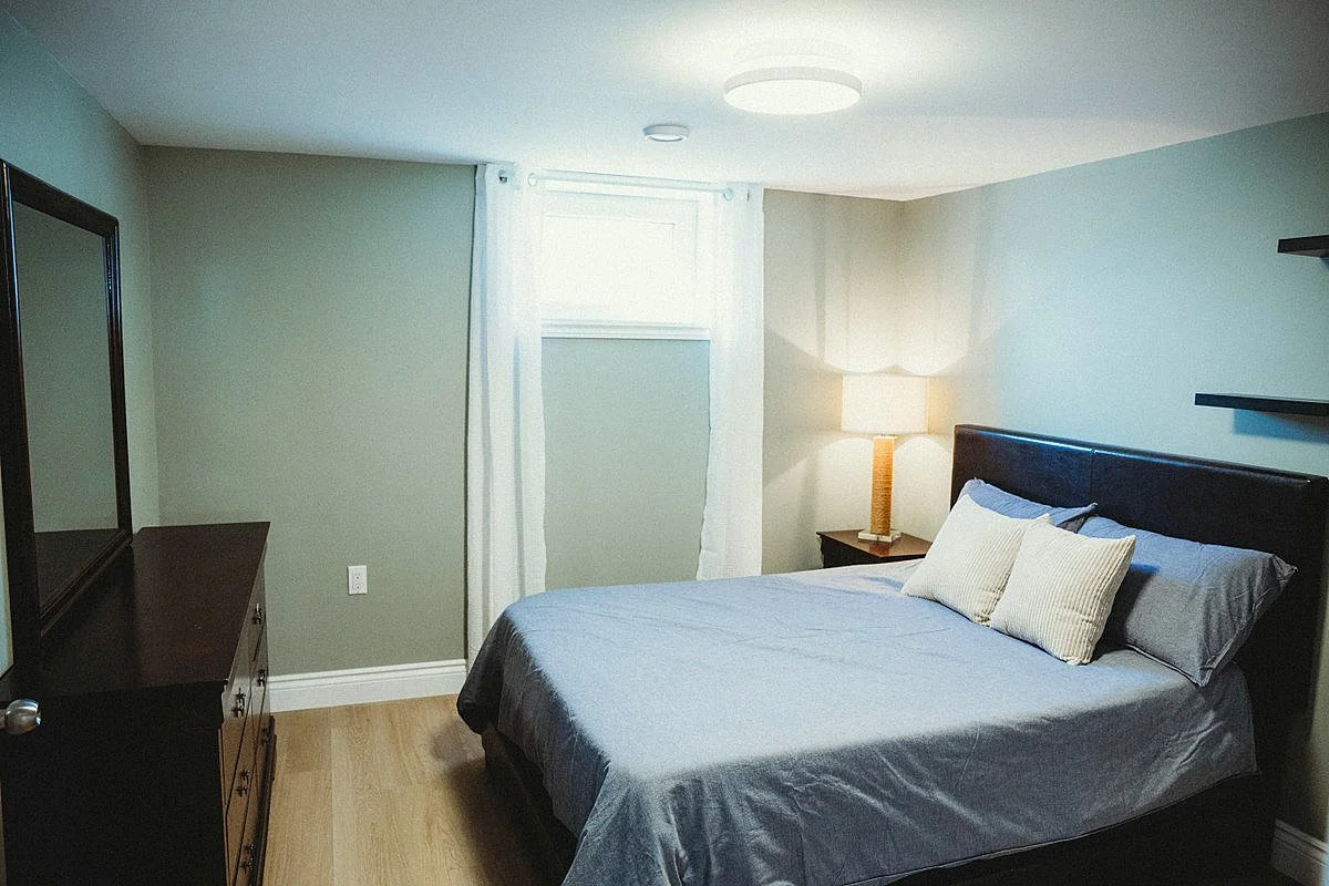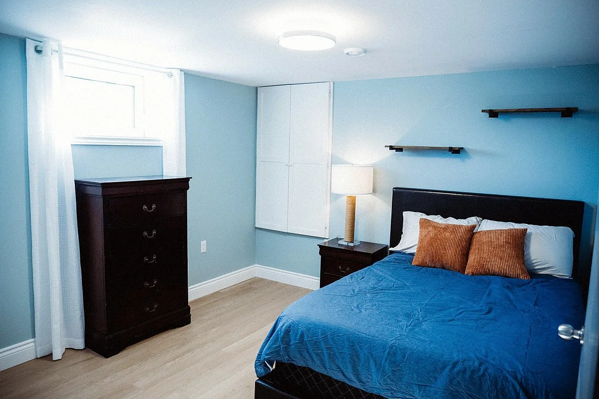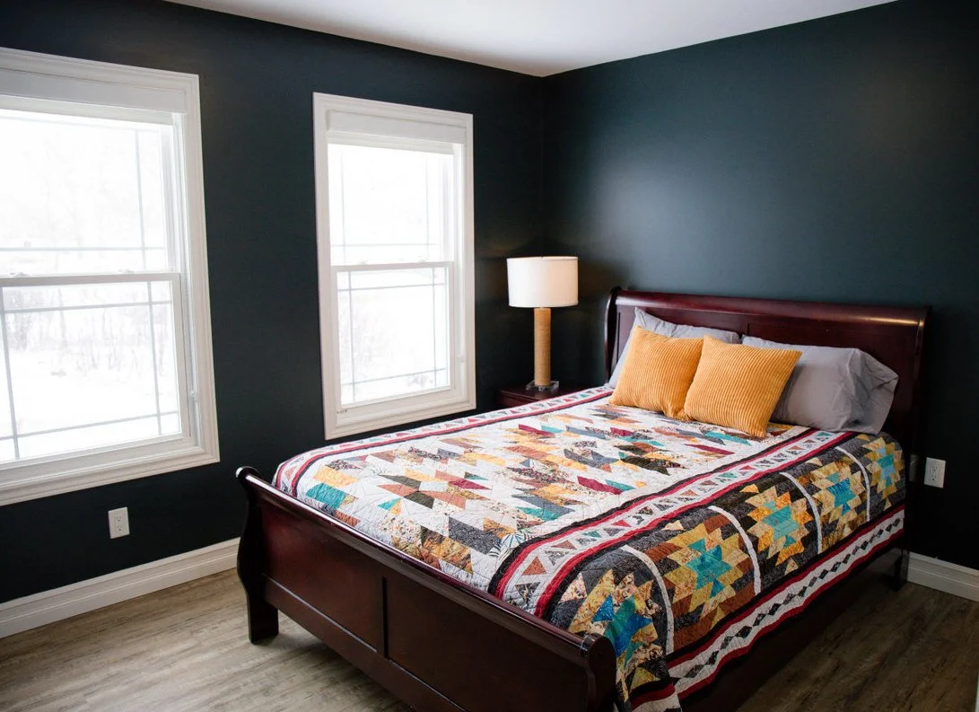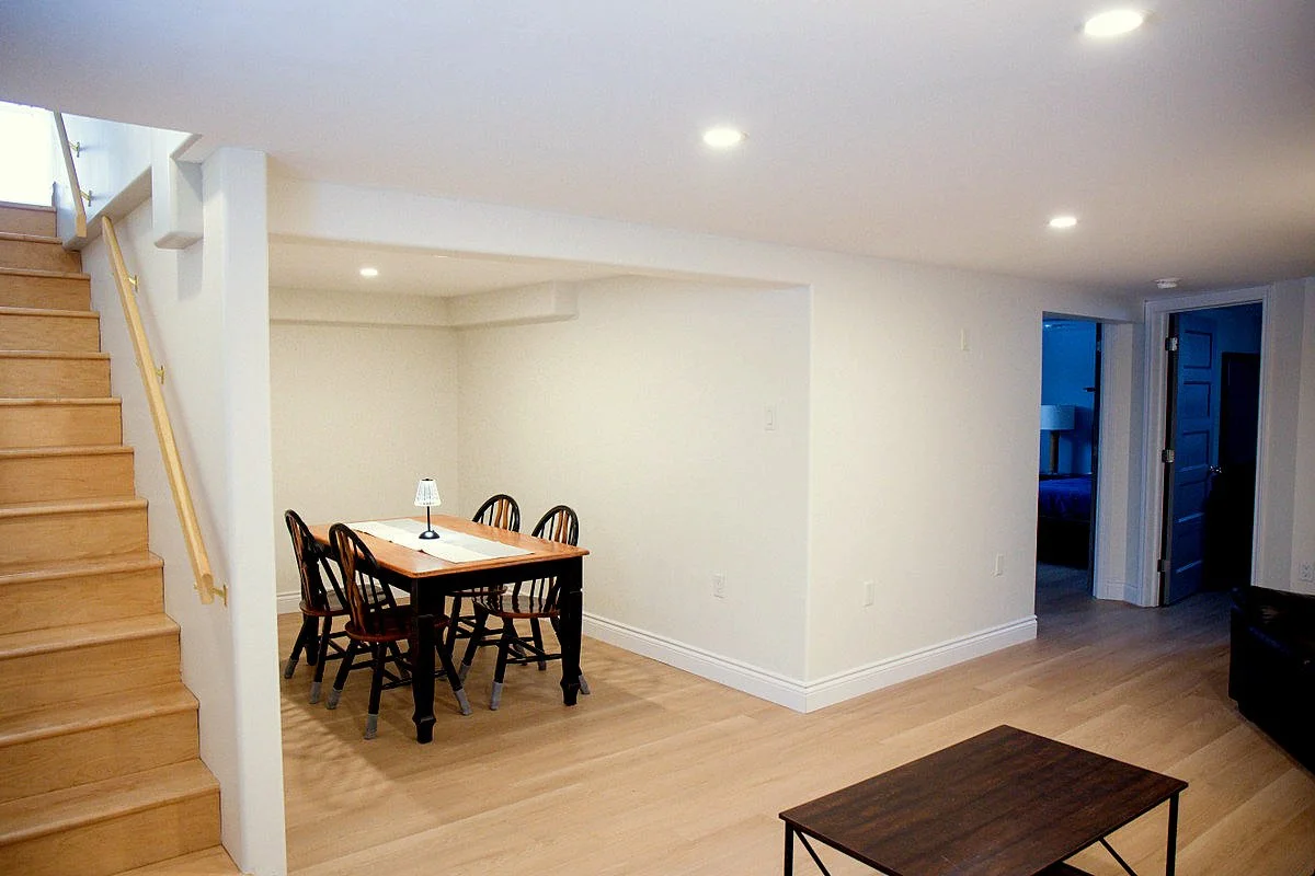 Downstairs are two more bedrooms and another bathroom, with laundry. Also a spacious L-shaped living room/den/TV room.