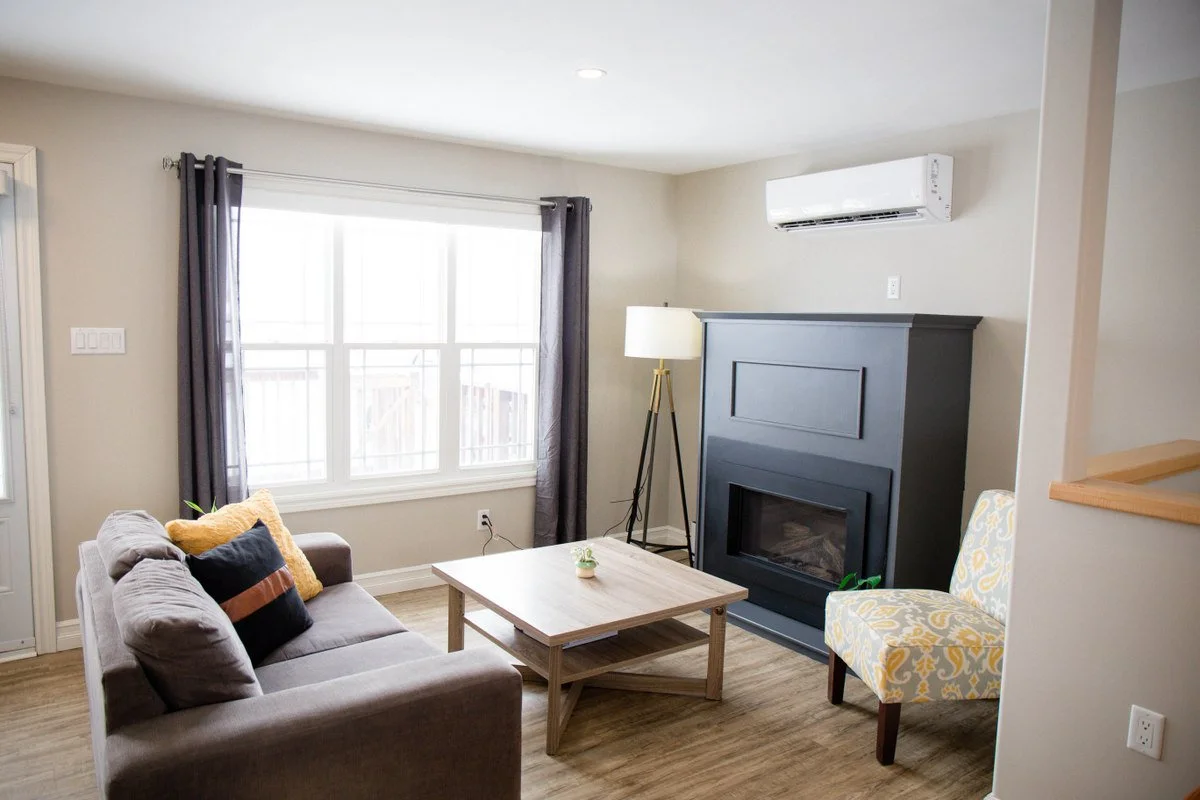 Heating - 2 heat pumps, one on each floor. Propane fireplace in the living room.